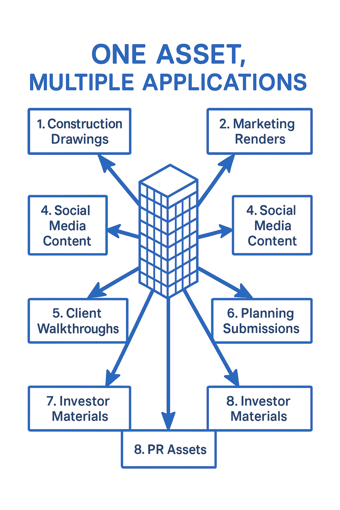This is the logic of intentional development: project workflows that treat design outputs as multi-purpose business assets from the start. The budget does not increase, the strategic awareness broadens.